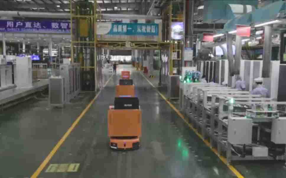 为车载冰箱物流配送打造的智能解决方案,,,,包含产中物流通过潜伏举升AMR搬运至线边,,产后成品物流智能仓储,,,流程包含产中物流智能齐套入库,,,,线边安灯叫料AMR智能配送至线边,,,成品入库、、、、出库,,,通过无人堆高车机器人,,智能仓储管理替代人工作业管理,,,,实现更高存储、、更高效率、、、更具柔性化的解决方案。。。
